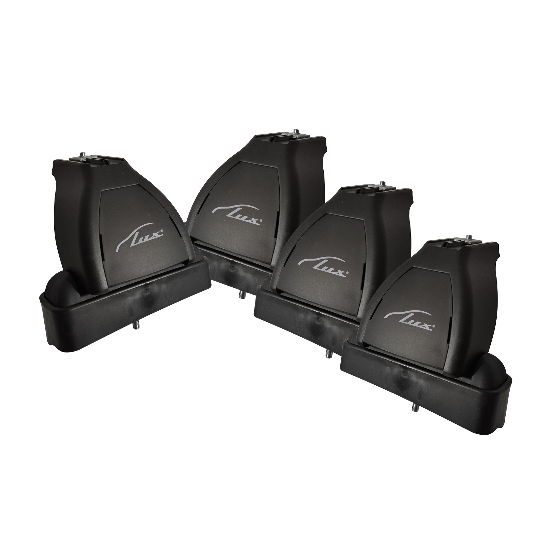 Комплект включает в себя 4 опоры и все необходимые крепежные элементы (резиновые подушки, болты и другая фурнитура), необходимые для установки багажника на автомобиль.